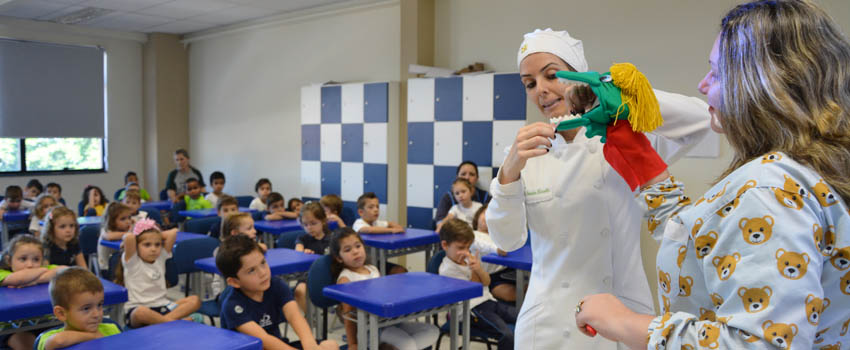 Atentos, os olhares dos estudantes matriculados no Nível I da Educação Infantil do Colégio Notre Dame miravam os fantoches. Mas, o que os bonecos faziam ali não era contar uma história. Era estimular um hábito saudável.