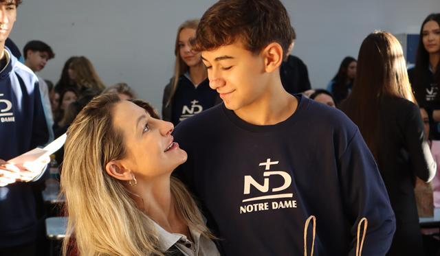 O amor materno desperta conexões e sentimentos únicos. Por isso, oportunizar a vivência de tais vínculos e emoções foi o principal objetivo das comemorações promovidas pelo Colégio Notre Dame em alusão ao Dia das Mães. Envolvendo os matriculados na Educação Infantil e em todo o Ensino Fundamental, as homenagens possibilitaram a demonstração do afeto e da gratidão nutridos por cerca de 1400 crianças e pré-adolescentes, em momentos de profunda cumplicidade, bem como de valorização do maternar enquanto um compromisso sagrado, desempenhado segundo o exemplo de Maria.