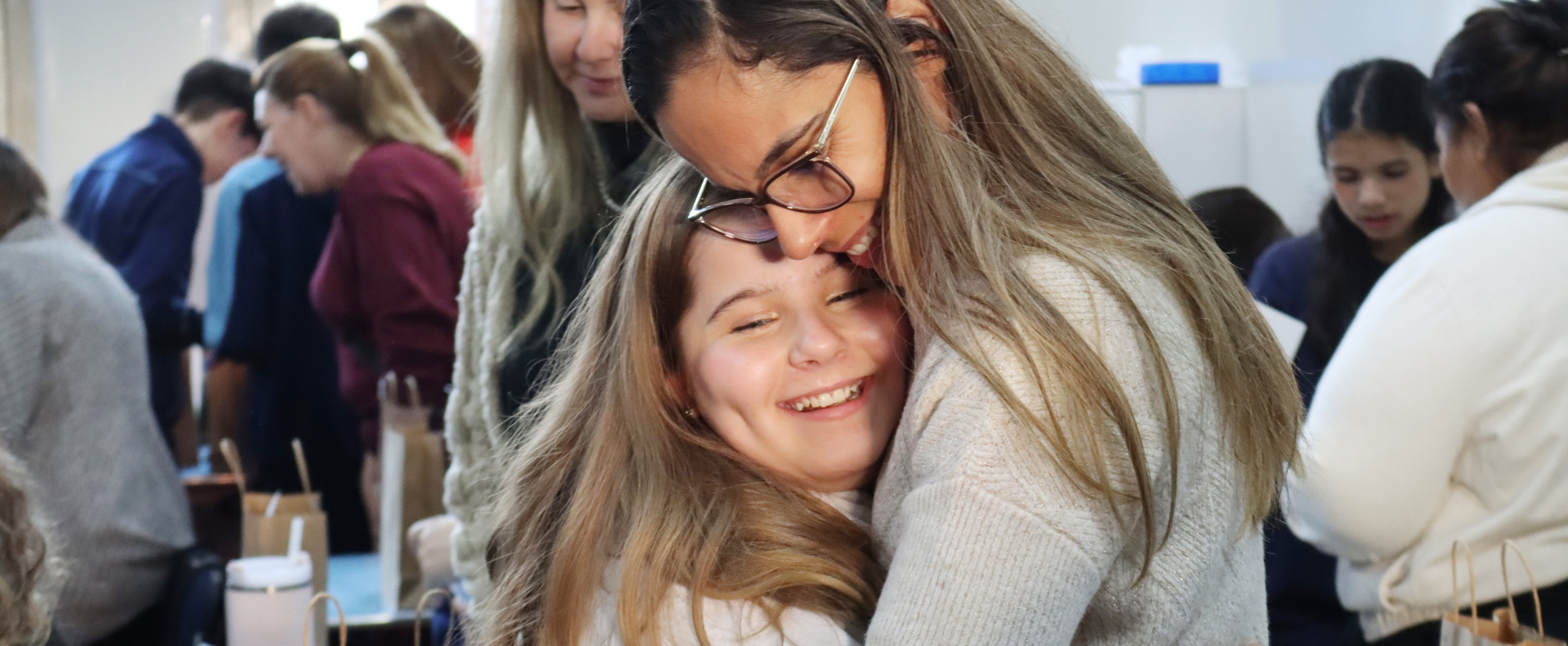 As palavras grafadas a próprio punho também foram o meio encontrado pelos educandos matriculados do 6º ao 9º Ano do Ensino Fundamental para externar as emoções que reconhecem em si quando pensam em suas figuras maternas. Por isso, após momentos de espiritualidade, os quais foram realizados na capela do educandário, eles acompanharam suas convidadas até as salas de aula, onde declamaram poemas, entoaram canções e presentearam-nas com seus amorosos escritos.