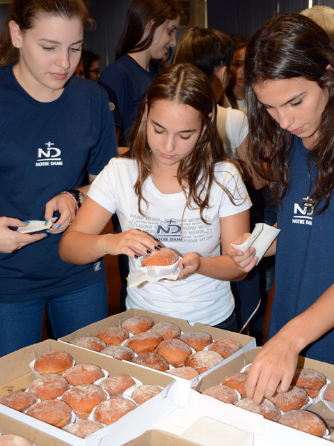 Ao término do encontro, os novos estudantes saborearam sonhos – alimento que faz alusão à ideia de fundar uma congregação religiosa que se dedicaria à educação, concretizada por Júlia Billiart, em 1804.